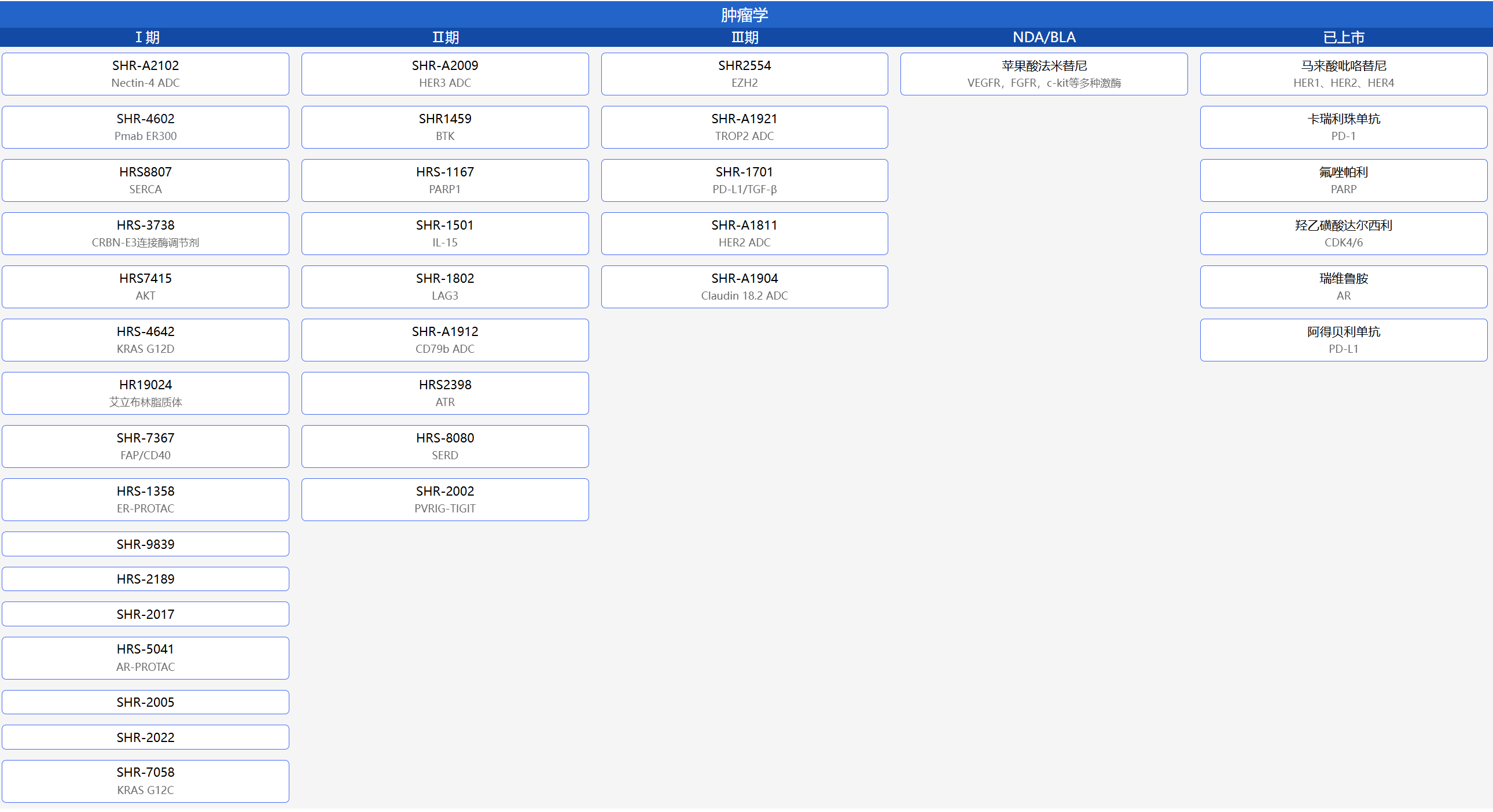 恒瑞医药创立于1970年,于2000年在上海证券交易所上市,是一家专注研发、生产及推广高品质药物的创新型国际化制药企业,聚焦抗肿瘤、代谢性疾病、自身免疫疾病、呼吸系统疾病、神经系统疾病等领域进行新药研发,是国内最具创新能力的制药龙头企业之一。